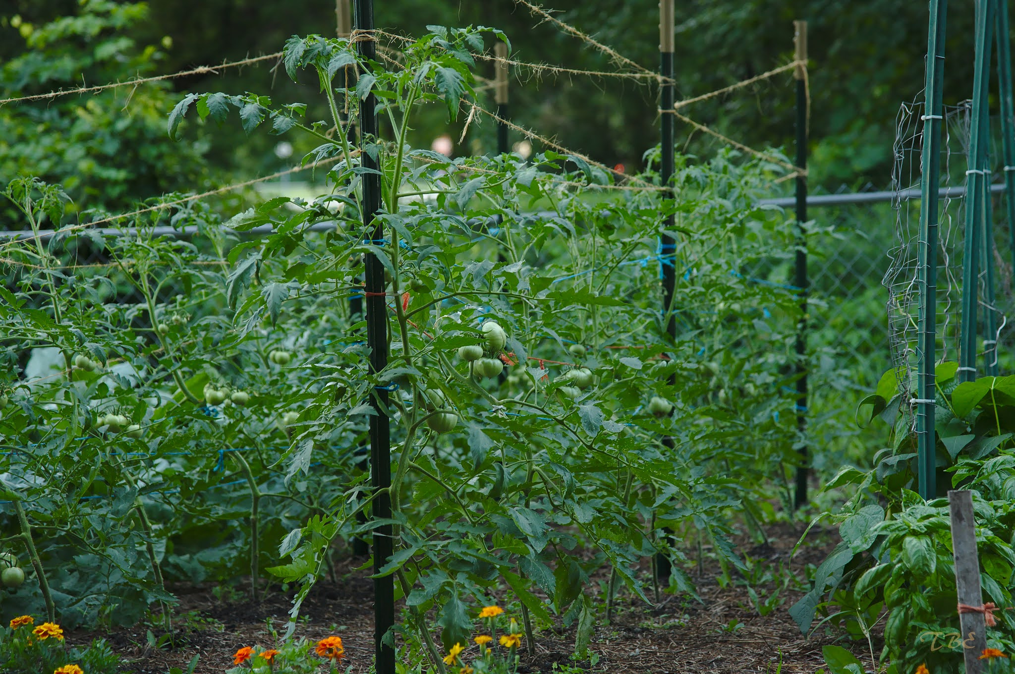 Stringing up the Tomatoes: Camera; Nikon d750, Lens; Nikon AF-S 24-120mm, f/4 G ED VR, Exposure; 1/100 sec, f/4.5, iso 1000